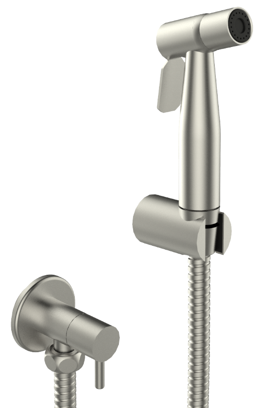 HEIMBERG-AQUA:STAINLESS STEEL BIDET SPRAY W ANGLE VALVE BRUSHED